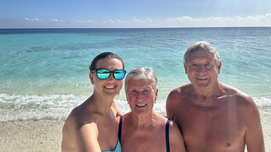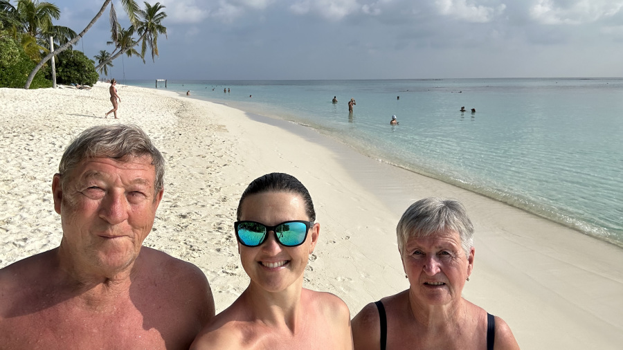 Prav nimam besed, ki bi opisale predvsem mojo nepopisno srečo ter zadovoljstvo, ko sem videla svoja starša, kako zelo sta uživala na počitnicah na rajskih plažah Maldivov. In zadovoljna ter presrečna, da sem lahko predvsem sebi izpolnila to veliko željo, dokler smo vsi trije še tukaj, živi in zdravi. Nikoli ne veš, kdaj ne boš imel več priložnosti. Hvala za vse, ati in mami. Neskončno vaju imam rada.