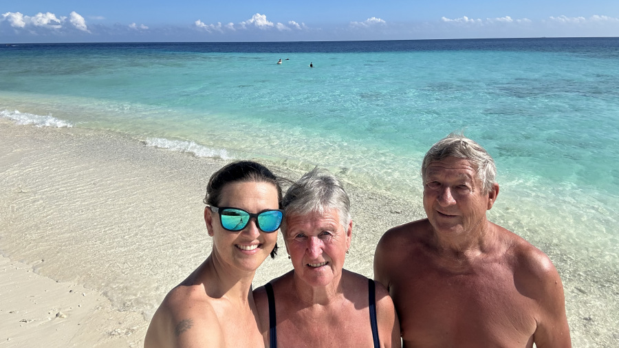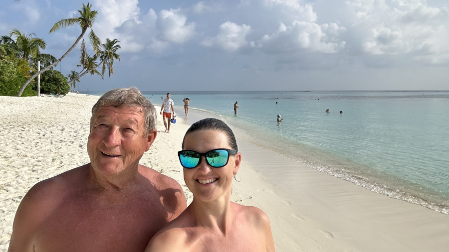 Leto 2023 sem zaključila na najlepši možen način. Praktično sem se čez noč odločila za še eno potovanje na Maldive, saj sem imela še 8 dni letnega dopusta. H končni odločitvi je prispevala predvsem cena letalske vozovnice z letalsko družbo FlyDubai iz Ljubljane, ki je bila za decemberski čas precej ugodna. Hkrati pa sem si uresničila eno od največjih življenjskih želja in sicer da na rajske Maldive odpotujem s svojima staršema. Nazadnje smo bili skupaj na morju oz. dopustu davnega leta 1995, torej pred 28-imi leti, ko sem imela rosnih 15 let. Tako sem jima pripravila pravo presenečenje, ki sta ga brez oklevanja in z velikim navdušenjem sprejela. Čez 4 dni smo že skupaj poleteli na rajske Maldive. Imeli smo se prekrasno, uživali smo prav vsak trenutek. Moje srce pa je zadovoljeno in presrečno!