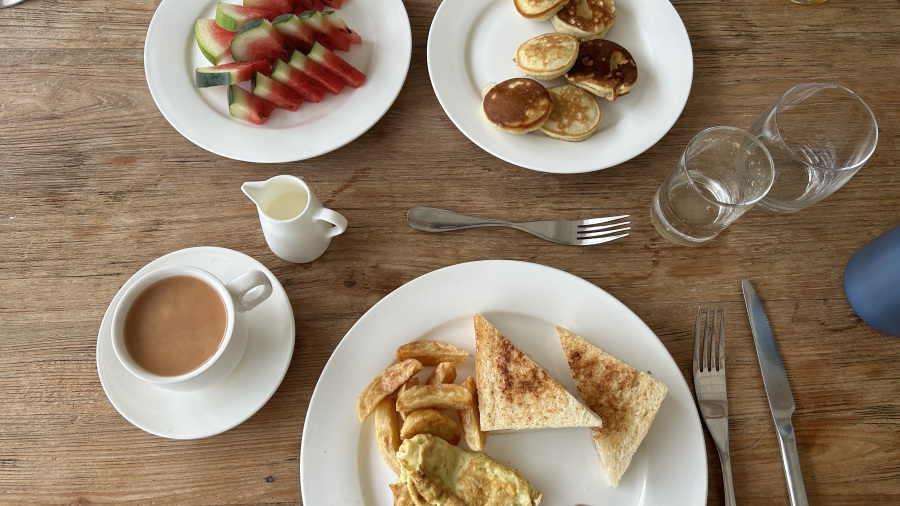 Maldive sem obiskala že četrtič v štirih letih, zato vem, kaj lahko pričakujem od njihove kulinarike. Meni je več kot odlična. Najbolj smo se seveda veselili jedi, ki jih enostavno obožujem. Ena od njih je tipičen maldivski zajtrk – mashuni in sicer je to tuna s kokosom in čebulo, ki jo postrežejo s tradicionalnim kruhom. Druga jed, ki jo enostavno obožujem in smo jo jedli skoraj vsak dan, pa je riž s tuno/piščancem in zelenjavo ter začimbami ter pečenim jajcem. Seveda brez vsaj enega svežega kokosa, s katerega sten smo strgali tudi meso, nikakor ni šlo. In svežega manga, ki ga okusnega, zrelega in dobrega dobiš samo v lokalnih trgovinah. Je pa na otoku Thoddoo doma lokalno pridelana papaja, ki je izjemnega okusa. Za vso hrano smo v 10-ih dneh skupaj porabili le 436 EUR.