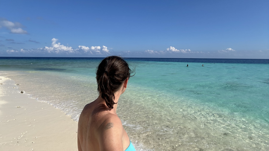 Na otoku smo nato preživeli dva prekrasna dneva. Ob šestih zjutraj smo šli na sprehod po otoku med najlepšimi palmami in nasadi papaje. Obožujem Thoddoo. Nato smo si privoščili zajtrk in starša sta dopoldne uživala na plaži. Jaz sem naredila v dveh dneh tudi 3 izjemne potope. Uživala sem v družbi ogromnih mant, ki so plavale povsem blizu nas. Podvodni svet Maldivov je res neverjeten. Popoldne smo skupaj preživeli na čudoviti plaži, ki ima nežno in belo mivko ter prekrasno turkizno morje. Uživali smo ob grižljajih sladke papaje in nadvse okusnega kokosa. Nepozabni dnevi, ki so res prehitro minili.