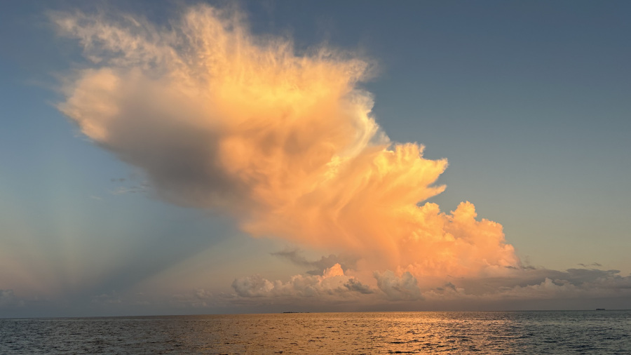 Imeli smo srečo in smo premik imeli ravno v nedeljo, ko vozi direkten lokalni trajekt iz otoka Thoddoo na otok Ukulhas. To ni vsak dan, poglejte razpored prej in tudi ni zanesljiv. Odpelje ob 7h zjutraj in mi smo imeli srečo, da je vse šlo po načrtih. Vožnja stane le 4 EUR za vse tri. Sicer je treba s hitrim čolnom nazaj v Male in potem na Ukulhas, to pa je precej draga možnost (okoli 230 EUR bi nas stala). Na otoku Ukulhas smo bili že ob 8:30 zjutraj, tako da smo imeli na voljo že cel prvi dan. Ukulhas je tudi imel mokre mivkaste ceste, ker je precej deževalo. Kasneje je bilo lepo vreme, razen en dan je res polivalo od 11h-15h. Jaz sem bila na potopih, starša pa sta ravno počivala, tako da je bilo čisto v redu. Vse dni smo zelo uživali. Jaz sem naredila 7 noro lepih potopov in se celo opogumila za svoj prvi nočni potop, na katerega sem vzela s seboj na čoln tudi starša. Kakšna dogodivščina za vse nas. Potapljati se v trdi temi z lučko je res pravo doživetje. Ne vem pa koga je bilo bolj strah – mene v vodi ali starša na čolnu v trdi temi sredi morja. Haha. Potop je bil izjemen. Ponoči ribice “spijo”, zbudijo pa se lovci (velike ribe, morski psi). Kako je vse švigalo direktno mimo mene. Waw. Preostali čas smo uživali na plaži, se razvajali s sadnjem in kokosi ter uživali ob kopanju v res prekrasnem morju. Obožujem Ukulhas in njegovo prekrasno morje na “špički”. Bili smo praktično ves čas v vodi – ure in ure cele dneve. Še pridem(o).