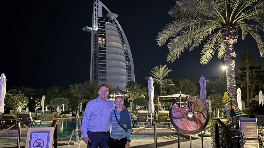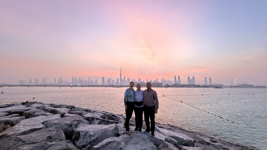 V Dubaju smo naredili zelo hiter nekajurni postanek, ker imam zelo dobrega prijatelja v Dubaju in nas je zelo prijazno gostil. Še več, na letališče nas je prišel iskati ob 4h zjutraj in nas kot največjo “gospodo” odpeljal od ene do druge znamenitosti v Dubaju. Nismo imeli več kot 3 ure časa, zato smo si ogledali le Burj Khalifo, hotel Burj Al Arab in odpeljali smo se na otok “umetna palma”, od koder je najlepši razgled na mesto. Tam smo bili ravno ob sončnem vzhodu. Vreme ni najbolj sodelovalo, saj je bilo megličasto. Ob krasnem sončnem vzhodu nas je prijatelj Andrej odpeljal nazaj na letališče, kjer smo si privoščili zajtrk in se vkrcali na letalo do Ljubljane. Skupaj smo preživeli izjemno lepe počitnice, ki jih ne bomo nikoli pozabili. Upam le, da nam uspe še kdaj.