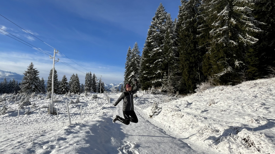 Kot je že v najini navadi, na Silvestrovo ne ponočujeva in niti ne praznujeva skoka v novo leto. Letos sva zaspala že ob deveti uri zvečer, ker sva dan prej smučala na Obertauernu. Veliko raje na novega leta dan zgodaj vstaneva in si privoščiva bodisi smučanje, gorništvo ali pohodništvo. Lani sva bila na vrhu Viševnika že ob 9h zjutraj, seveda pa je vse odvisno od vremena. Letos je na silvestrovo ravno snežilo v sredogorju, zato sva se odločila za jutranji pohod po sveže zapadlem snegu s Pokljuke do koče na Uskovnici. Bila sva prva obiskovalca malo po osmi uri zjutraj. Snežna podlaga je bila sicer ravno pravšnja, čisto spodaj pa je bilo precej mokro. Že ob desetih zjutraj sva v koči pojedla najljubšo malico – domače sirove štruklje. Nazaj grede sva naredila malo večji krog, saj sva še podaljšala pot do izhodišča za planino Konjščica, do katere tokrat nisva šla, ker je bilo po gozdu precej blatno in preveč drseče. Preživela sva krasen prvi dan v letu. Pa srečno!