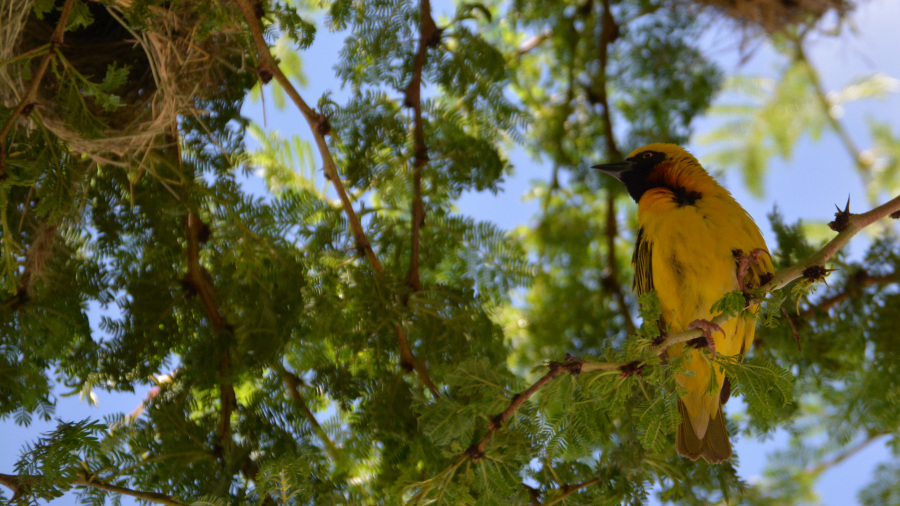 K sreči smo se do Masai Mare tokrat peljali čez hribe in ne po glavni cesti, po kateri smo prišli iz Nairobija v Lake Nakuru. Pot je bila tokrat manj stresna, peljali smo se po hribih med vasmi in med polji. Temu delu Kenije pravijo skleda hrane, saj pridelajo veliko hrane za celotno državo. Vmes smo naredili postanek na urejenem parkirišču za turiste. Tam najdete kavarno, ogromno trgovino s spominki, čist wc in prelepe rumene ptice. Od tu naprej do Masai Mare je popolnoma nova asfaltirana cesta. Kar nisva mogla verjeti očem.