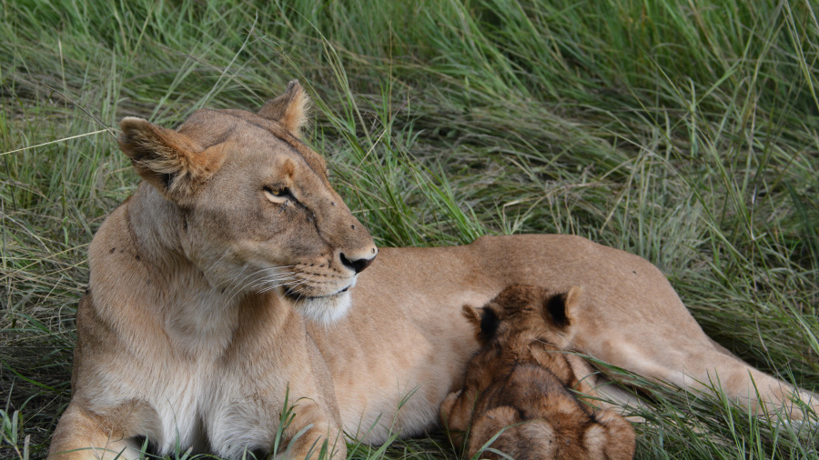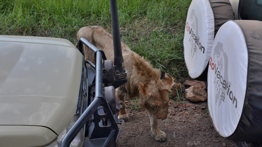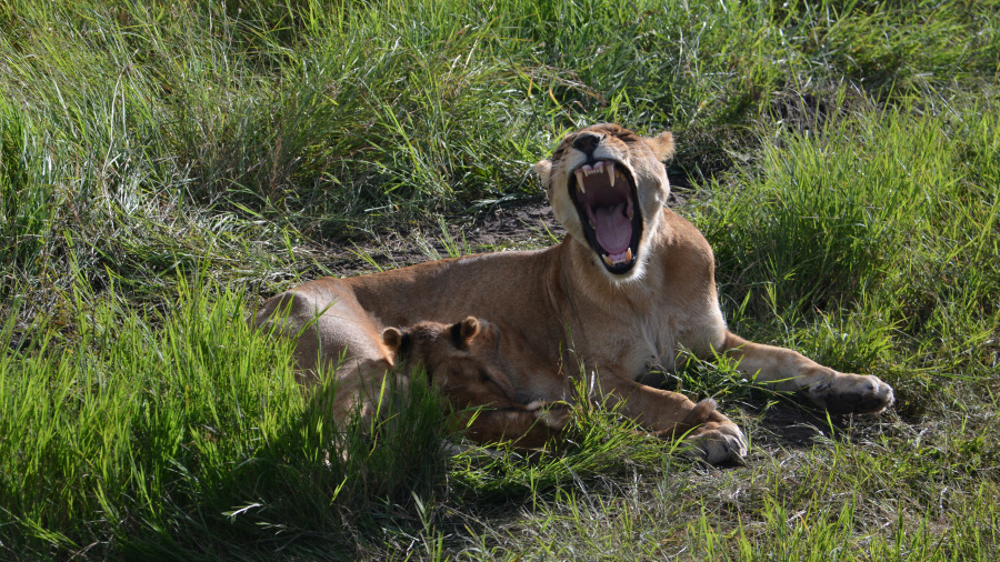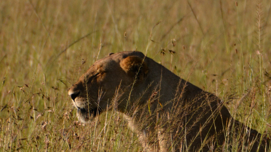 Po odličnem kosilu in krajšem počitku smo se odpravili na vožnjo po parku. Žal smo zamudili geparda, smo pa dobili darilo ob glavni cesti. Ležala je mlada levinja z mladičkom ter na drugi strani cesti mladi lev. Imeli smo res srečo, da so bili tako blizu ceste, saj je trava v tem času izredno visoka. Opazovali smo jih dolgo časa, vmes so se celo premaknili, zehali, rjoveli drug na drugega, mladiček pa je prevsem pridno sesal mleko, saj je bil še čisto majhen. Kmalu zatem smo na travniku opazovali še 4 levinje, ki so počivale v visoki travi, a vseeno tu in tam menjale svojo lokacijo, tako da smo jih lahko opazovali. Ob sončnem zahodu smo se zadovoljni vrnili v kamp na večerjo in zaslužen počitek.