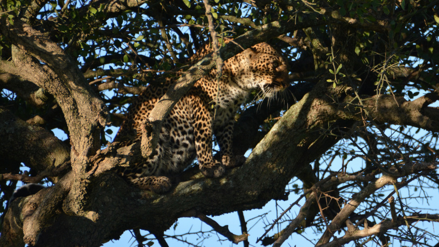 Denarja je žal zmanjkalo, zato je bilo treba naprej. Malo za hec in malo zares. Naš res lep safari krog po Keniji se je počasi bližal koncu. Po zajtrku smo se namreč odpeljali nazaj proti glavnemu mestu, kjer se je končalo naše skupno popotovanje. A še preden smo zapustili Masai Maro, smo dobili najlepše darilo – veliko češnjo na torti. Pet minut vožnje od kampa je na drevesu počival leopard. Seveda smo se ustavili in ga eno uro opazovali. Bilo je nepredstavljivo lepo oziroma celo boljše kot bi si sama zapisala scenarij. Leopard je poziral in se nato celo sprehodil mimo najinega avtomobila. Res noro. Z vožnjo smo nato nadaljevali do bližnje masajske vasi, kjer nama je sin od poglavarja prijazno odprl njihov dom. Vožnja do Nairobija je bila dolga in v udoben hotel sva prispela pozno popoldne. V hotelu sva si privoščila res okusno kosilo in počivala v udobju hotelske sobe.