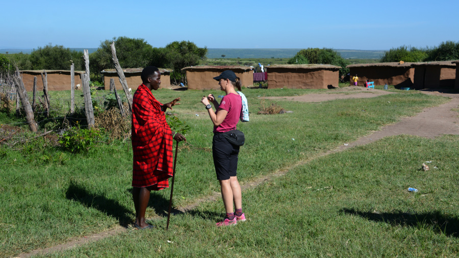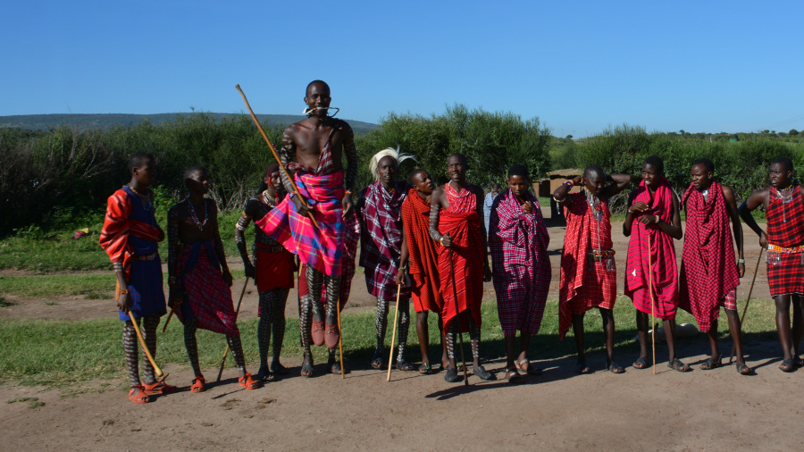 Vodnika in šoferja Georga sva prosila za obisk tradicionalne masajske vasi, ko smo se vozili nazaj v Nairobi. Tik ob cesti je postavljena krasna, precej velika vas, ki naju je toplo sprejela. Sprejel naju je celo sin poglavarja, ki običajno ni tukaj prisoten, saj uči v sosednji šoli. Je eden redkih, ki govori angleško, zato nama je lepo predstavil njihovo življenje in pokazal njihovo domovanje. Najprej so naju pozdravili že na vhodu in nama zaigrali na rok, nato celo zapeli pesem in fantje so se celo pomerili v skakanju. Višji skok pomeni večja moč in boljša izbira žene. Masaji so res še dandanes tako zelo fit, da samo gledaš z odprtimi očmi. Živijo vedno v tradicionalni vasi, ki je okrogle oblike in na sredi imajo dvorišče ter prostor za živali (koze in kokoši). Zvečer zaprejo vse vhode, da se zavarujejo pred divjimi živalmi. Hiše so zgrajene iz lesa in blata ter zamazane s kravjaki. Notranjost hiške je skromna, a ima celo prostore kot so spalnica, kuhinja in shramba. Midva sva si ogledala hišo poglavarja in njegove žene. Ta masajska vas ima več kot 70 prebivalcev, vsi so ena velika družina. Le žene pridejo k drugi družini, vedno se one priselijo k svojemu možu. Masaji v Keniji ne smejo več loviti divjih živali. V zameno jim oblast podari finančni nadomestek za preživetje. Preživaljajo se s prodajo jajc in perutnine bližnjim hotelom. Obisk vasi nama je bil res všeč.