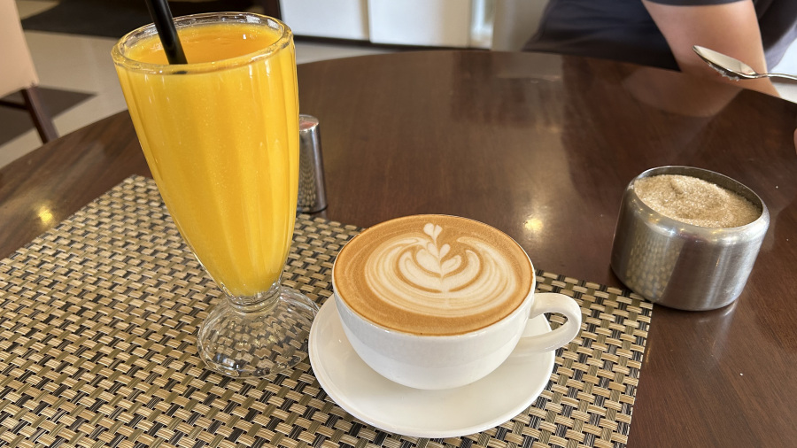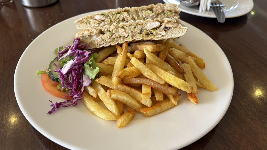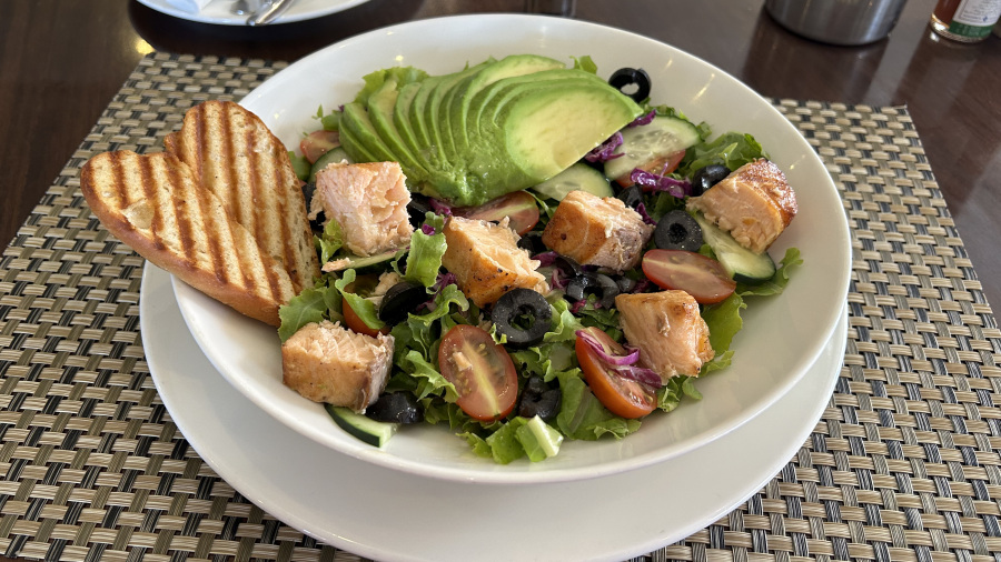 - kosilo (solata z lososom, chicken shawarma, kapučino, mango juice) = 19 EUR