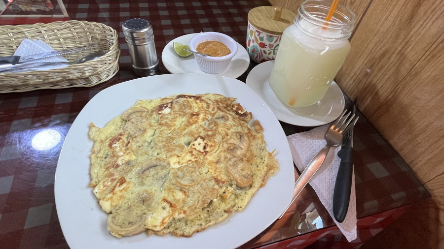 Pošteno sva bila že lačna, zato sva zavila v domačo restavracijo na odlično kosilo. Jaz sem si izbrala tortiljo (beri jajčno omleto) s šampinjoni in avokadom, Matjaž pa seveda zrezek. Super in poceni.
