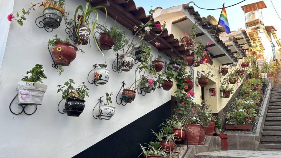 Peš sva se sprehodila še do soseske San Blas. Nisva imela več veliko časa, a vseeno sva naredila kratek ogled, predvsem pa sprehod po soseski. Obrtniška stanovanjska soseska z delavnicami in trgovinami, je eden izmed najbolj slikovitih predelov mesta. Poznana je postala po tem, ko so se vanjo naselili umetniki Mendivil, Olave in Merida. Ulice so strme in ozke, hiše so zgrajene v španskem slogu na inkovskih zidovih.