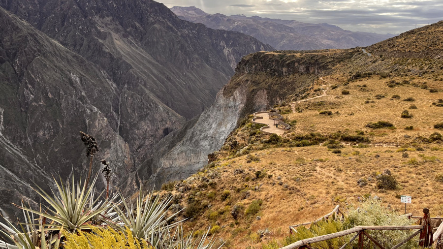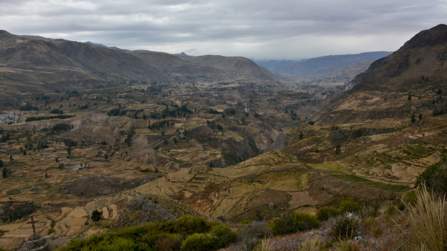 Po zajtrku sva se odpeljala po cesti proti zahodu, ki vodi med vasmi v kanjonu Colca. Kanjon Colca je z globino okoli 1000 – 2000 m (pri čemer je dno na cca 2000 m, robovi pa na 3000 – 4000 metrih nadmorske višine) eden najglobljih kanjonov na svetu. Njegova dolžina je približno 70 kilometrov. Dolina Colca je barvita andska dolina s prebivalci pred Inki in mesti, ustanovljenimi v španskih kolonialnih časih, kjer še vedno živijo ljudje iz kultur Collagua in Cabana. Lokalno prebivalstvo ohranja tradicijo svojih prednikov in še naprej obdeluje predinkovske stopničaste terase, imenovane andene.