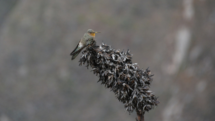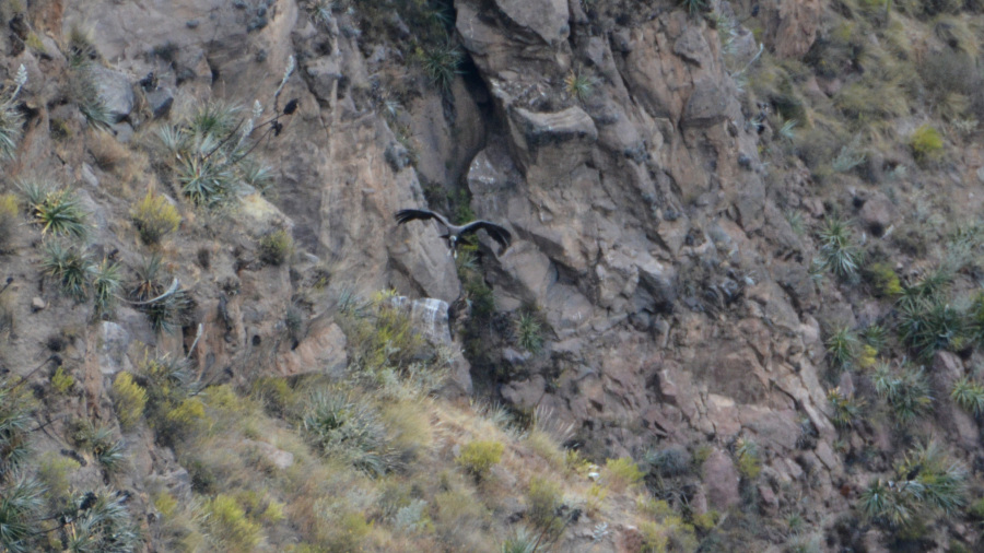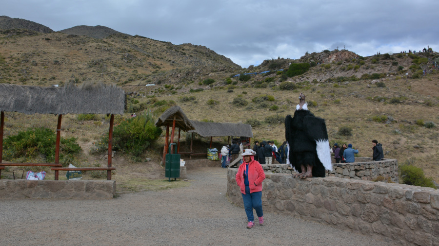 Midva sva se ustavila na priljubljeni razgledni točki „Cruz del Condor“ za ogled kondorjev. Na tej točki je dno kanjona 1200 metrov pod robom kanjona. Prispela sva okrog pol devetih zjutraj in na mrazu čakala predstavo. Obiskovalcev je bilo vsako minuto več, kondorjev pa žal nikjer. Dolgočasila sva se z opazovanjem drugih ptičev, predvsem kolibrijev. Tukaj namreč domuje orjaški kolibri, največji član družine kolibrijev.