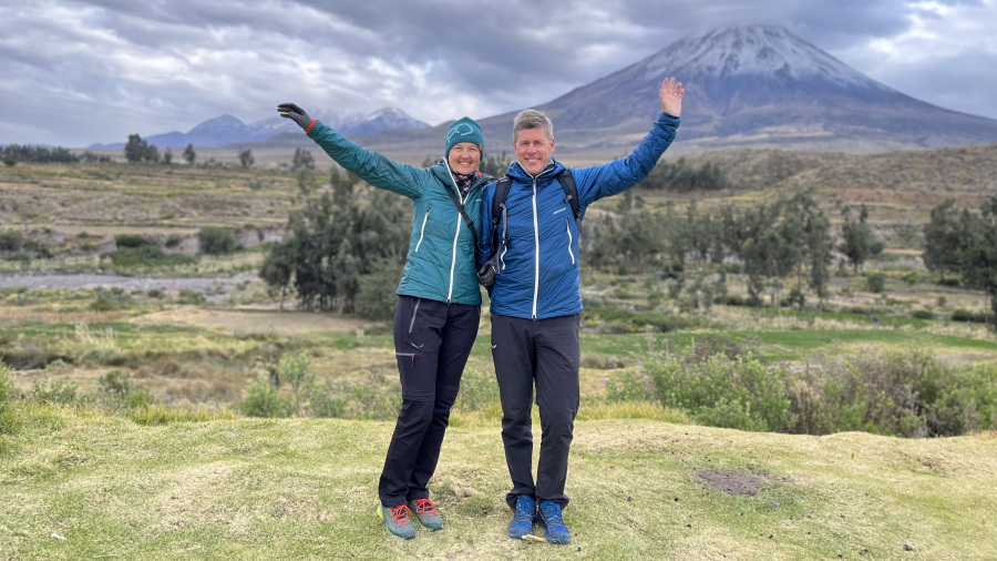 Zjutraj naju je pobral kombi kar v hotelu in odpeljali smo se najprej na razgledno točko na vulkan Misti (5.888 m). Včeraj ponoči je sneg pobelil vrhove najvišjih vulkanov, zato je bila kulisa še toliko lepša. V bližnjem prostoru smo se tudi ustavili na okusnem zajtrku, ki je bil vštet v ceno. Kar naju je zelo presenetilo, v kombiju so bili samo domači turisti. Midva sva bila edina tujca.