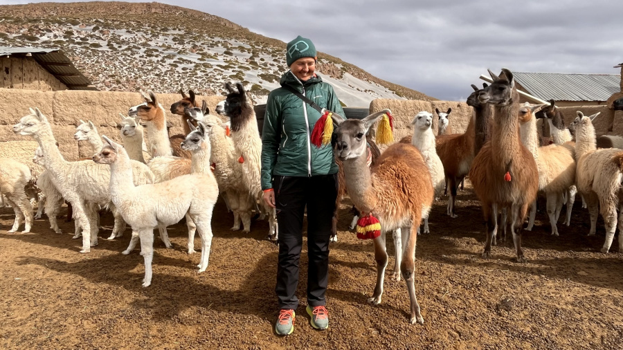 Po nori cesti smo se ponovno dvignili visoko in v območje nacionalnega rezervata. Povsod so se pasle lame in alpake, ki so tako zelo ljubke. Ustavili smo se pri enem kmetu, ki nas je celo spustil blizu svojih lam in alpak, kjer smo jih lahko hranili, jih pobožali in se z njimi tudi fotografirali. Kako ljubko.