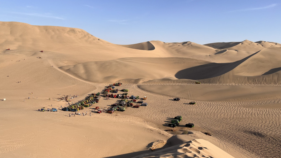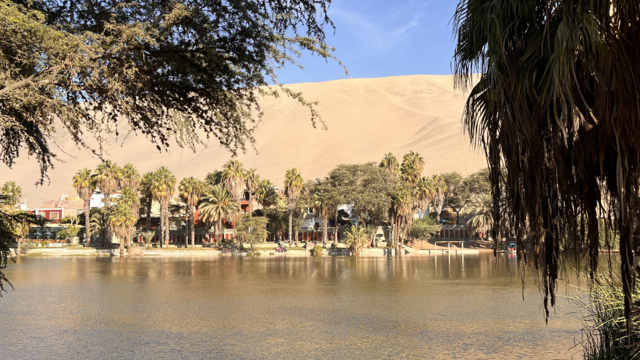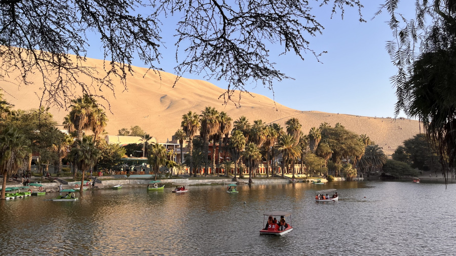 Naslednji dan sva krenila še pred zajtrkom, takoj ko se je zdanilo. Videla sva namreč, da je vožnja po tej cesti proti Limi še veliko počasnejša, kot je navedeno na Google Maps. Prometa je namreč res ogromno in vožnja je zelo počasna. Za današnji dan sva imela za prevoziti 350 km do Ice. Bilo je še bolj naporno kot včeraj, saj je bila še gosta megla, zavita cesta, nekaj zdrsov tovornjakov, prehitevanje. V glavnem čista groza. Ampak sva uspešno premagala tudi to oviro in prišla v Ico ravno za čas kosila. Odločila sva se za ogled najstarejšega vinograda v Južni Ameriki in odličnega kosila v njihovi restavraciji. Pozno popoldne sva prispela do hotela blizu oaze v Huachacini, kamor sva se odpravila kar peš. Uživala sva okrog oaze in se povzpela na eno od sipin za lep razgled. Po dolgem času sva videla množice turistov, katerih sva se v resnici kar malce razveselila.