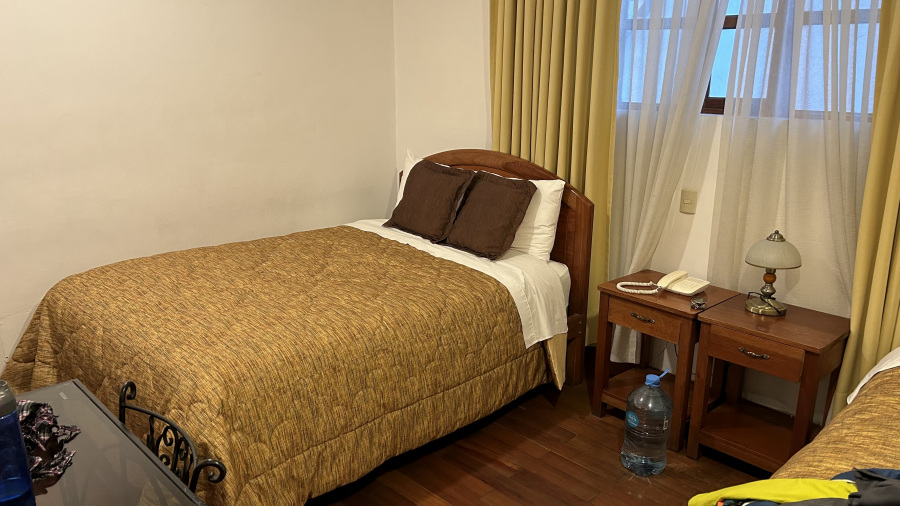 V Arequipi sva imela super hotel blizu centra. Še vedno sva morala s taksijem do centra, a je bilo vseeno res zelo blizu. Hotel je bil odličen, krasna soba, udobna postelja, lepa kopalnica, ogrevanje, topla voda in odličen zajtrk. Krasna izbira za dve nočitvi.