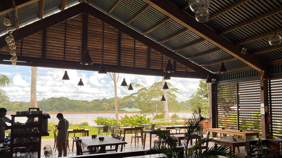 Woow. To pa je bila prava izbira. Krasen, moderen, a še vedno v slogu džungle in ob reki, kjer mrgoli življenja v Amazoniji. Izredno lepa soba, krasna kopalnca, lep bazen in prostor za počitek. Zvečer ob luči ogromno komarjev v jedilnici, čez dan praktično nič. Na nebu na tisoče ptičev, ki jih lahko opazuješ. Jedla sva vrhunsko. Ampak res vrhunsko – zajtrk, kosilo in večerja. Vse, kar sva naročila, je bilo za prste oblizniti. Organizirali so nama tudi vse izlete, tako da sva tukaj res bila nadpovprečno zadovoljna.