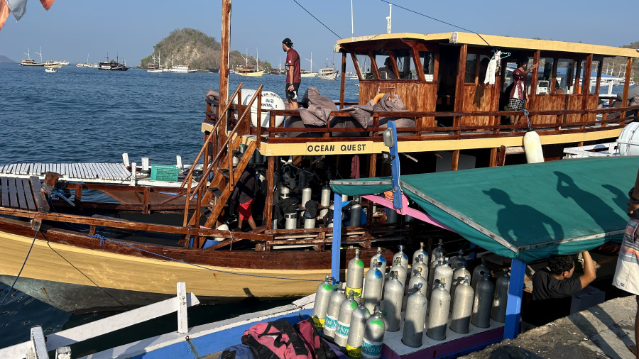 Potapljaških centrov je v Labuan Bajo toliko, da se jih ne da niti prešteti. Vse se vrti okoli potapljanja v nacionalnem parku Komodo. Jaz sem prebrala malo ocene na Googlu in se odločila na koncu za Dragon Dive Komodo, ki imajo tudi res lepe dvoposteljne sobe s svojo kopalnico seveda ter zelo lepo jedilnico z odlično hrano skozi cel dan. Ponoči je bilo povsem mirno, tako da sem tudi zelo dobro spala. Oprema je bila zelo dobra, tudi ladje so imeli dobre, inštruktorji odlični, hrana na ladji je bila okusna in res jih lahko samo pohvalim. Sobo sem imela vrhunsko. Več si res ne bi mogla želeti. Zvečer sem uspela celo obiskati nočno tržnico, ki je v sosednji ulici in imajo veliko “street fooda”.