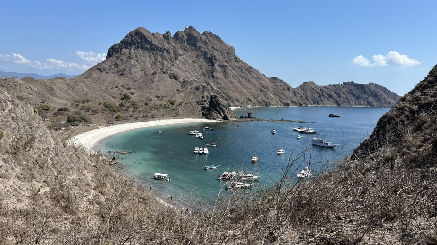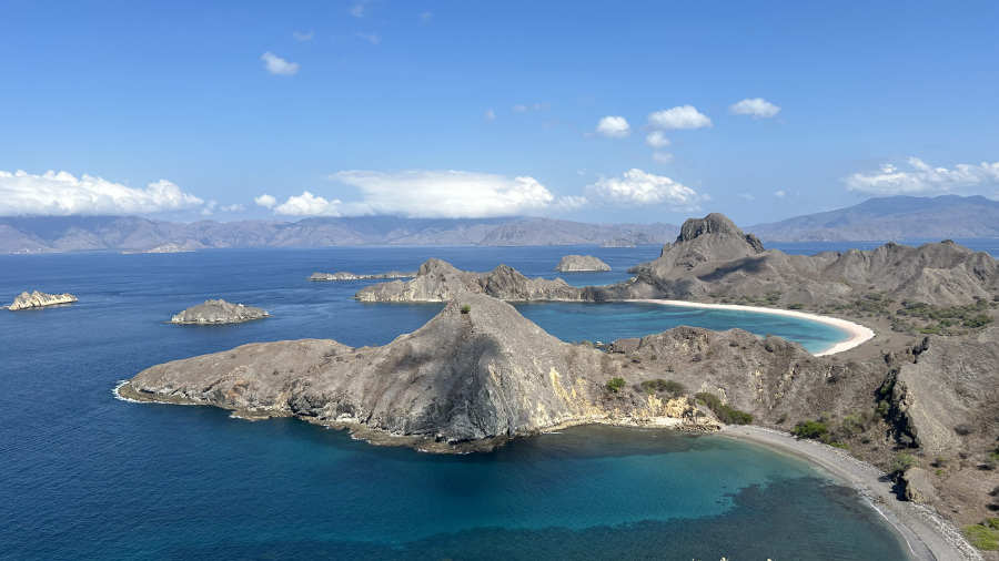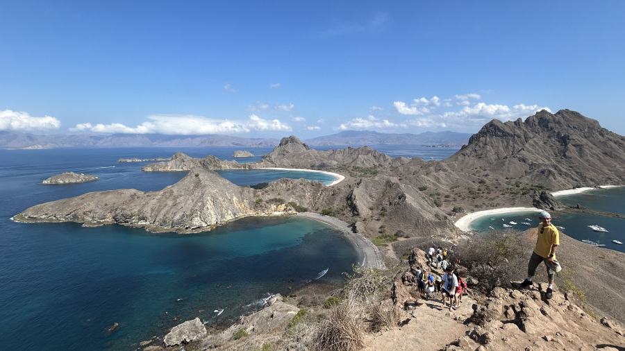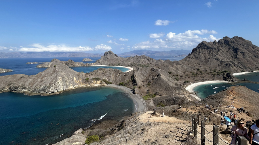 Ob 7. uri zjutraj smo odšli s taksiji izpred hotela do pristanišča, plačali vstopnino za nacionalni park Komodo in se s hitrim čolnom odpeljali do otoka Padar. Padar je znan po krasnem razgledu, kjer vidiš tri cele plaže. Seveda pa se je za razgled potrebno potruditi in prehoditi kar nekaj 100 stopnic. Mi smo ujeli super časovno okno in smo imeli do vrha še precej prosto pot. Nazaj grede je bila pa res gneča in pred vrhom se praktično ni dalo več premikati in mnogi niso mogli niti priti do vrha. Zadnji del poti namreč ni urejen s stopnicami, ampak je zelo ozek in drseč. Ampak za nas hribovce je seveda to mala šala. Mnogi pa imajo kar težave že s stopnicami in potem še “hribolazenjem”. Vroče je kot v peklu, ampak razgled pa prečudovit. Res lepo!
