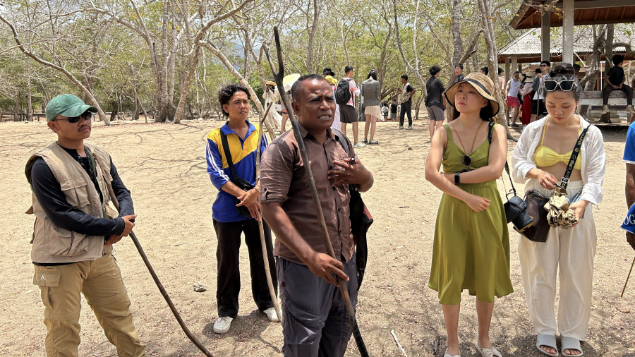 Na čolnu so nam postregli s kosilom, ker je hrana na vseh otokih prepovedana. Izjemno sem bila vesela tega ukrepa, ker tako ščitijo naravo pred vsemi možnimi odpadki. Tako smo lepo na čolnu pojedli in nismo nič svinjali po naravi. Nato smo končno šli na otok Komodo, po katerem se imenuje cel nacionalni park, ki je mnogo večji in zajema večje število otokov. V spremstvu vodičev smo šli na enourni kratek sprehod, kjer smo si zelo od blizu ogledali komodoške varane.