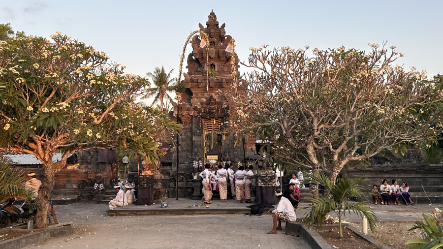 Enak spored kot včeraj, le da sem si tokrat izbrala drugi dve potapljaški mesti. Torej dva potopa v bolj mirnem morju in malce bolj toplem morju. Tokrat smo šli na potapljaški mesti Toyapakeh in SD. Potopa sta bila krasna in po mojem mnenju še veliko lepša in bogatejša kot včeraj. Doživela sem tudi vrhunec mojih dosedanjih potopov – videli smo namreč gromozansko moreno (Giant Honeycomb Moray Eel). Bila je tako velika, da nisem upala niti približno blizu. Dolga je bila 3 metre, samo glava je bila več kot pol metra velika. Oooo, kako lepo. Presrečna in zadovoljna z novimi podvodnimi izkušnjami. Popoldne sem si privoščila okusen pad thai za kosilo in sprehod, med katerim sem opazovala veliko praznovanje domačinov v templju Pura Penataran Ped. Vsi domačini so bili oblečeni v praznične saronge in prihajali na ceremonijo.