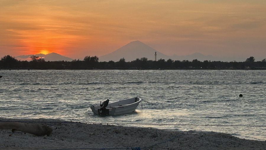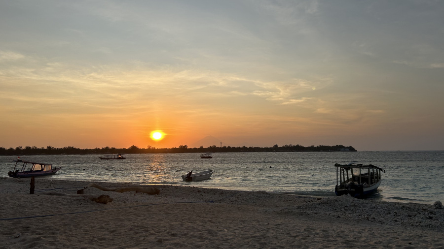 Še tretji in tudi zadnji potapljaški dan na zdravih koralnih grebenih v okolici otokov Gili. Jutranja običajna rutina – sprehod ob sončnem vzhodu, bananina palačinka z medom in dva zaporedna dopoldanska potopa. Tokrat smo se potapljali na mestih Gili Hans Reef in Gili Shallow Turbo. Bilo je res lepo, veliko malih in velikih rib, mehke in trde korale, dan pa mi je zagotovo polepšala ogromna želva, ki je trdo spala na še večji korali. Izgledala je tako, kot da si je privoščila globok spanec na zelo udobnem fotelju. Prelepo! S temi potopi sem tudi zaključila potapljanje na Gilijih, ki so me res pozitivno presenetili. Zagotovo se sem nekoč vrnem tudi pod vodo. Popoldne tudi zelo klasičen program – kosilo, sprehod in še en prekrasen sončni zahod. V daljavi se je videl tudi vulkani, ki so na Baliju.