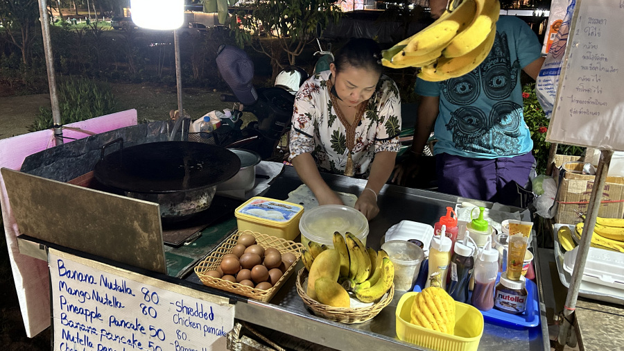 - palačinka z Nutello, mango sticky rice = 200 THB (5,5 EUR)