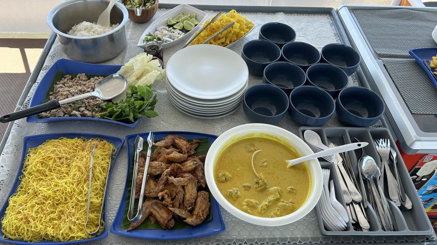 Vse tri države v Aziji so zame kulinarični raj. Tokrat sem sicer večino časa preživela v Indoneziji in na Tajskem, kjer sem imela zelo okusno hrano pri vsakem obroku. Doma nikoli ne jem palačink za zajtrk, tam sem jih praktično jedla skoraj vsak dan. Še posebej vse dneve, ko sem imela potem takoj potapljanje. Nekako mi najbolj ustrezajo. V dnevnih potapljaških izletih sem imela običajno vključeno tudi kosilo in sveže sadje, tako da po končanem izletu nisem imela niti velike želje po večerji. Za večerjo sem se običajno samo še malce posladkala z mangom ali kakšno sladico. V obeh državah obožujem ali rezance riž z zelenjavo in morskimi dodatki (škampi, ribami) ter seveda na tajski pad thai z rakci ter mango sticky rice. Na 5-dnevni potapljaški ladji so nam pa res tako odlično kuhali, da smo si oblizovali vse prste. Za hrano sem zato zapravila izjemno malo in sicer samo 267 EUR oz. 8,9 EUR na dan. Več nisem uspela zapraviti. Ker sem se potapljala, alkohola nisem pila, sladkih pijač tudi ne, vodo pa sem si ves čas tudi brezplačno točila v nastanitvah, ker želim ohranjati planet in ne kupujem vode v plastenki.