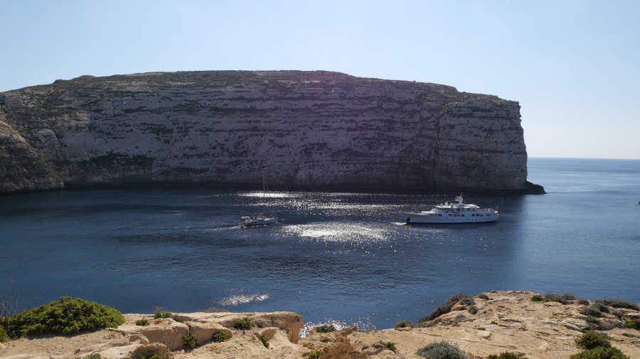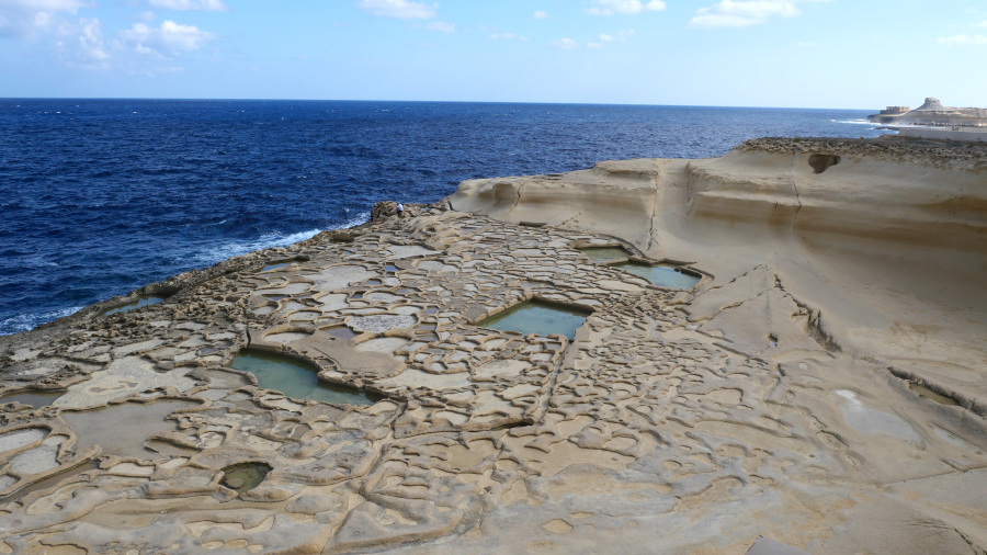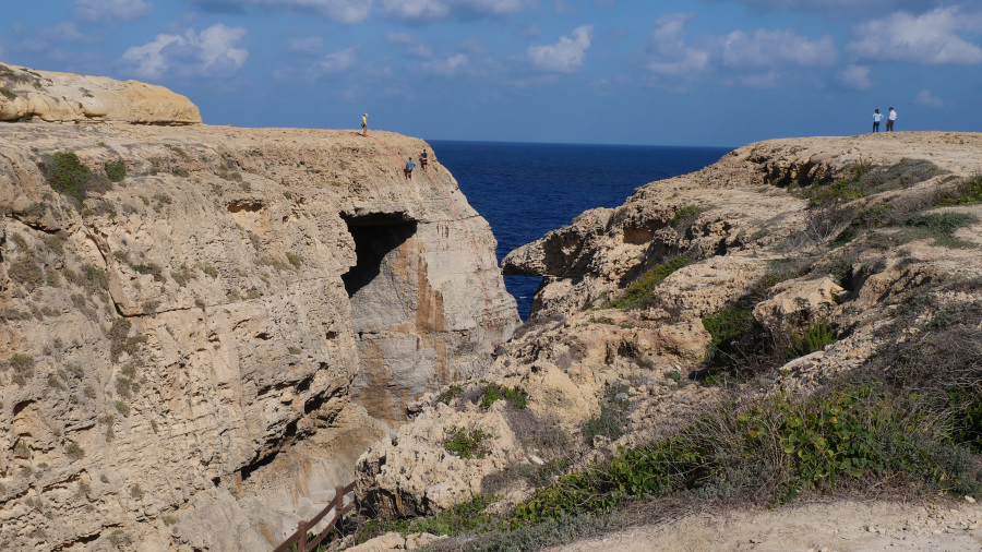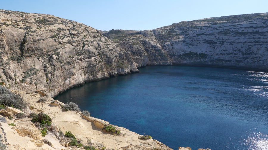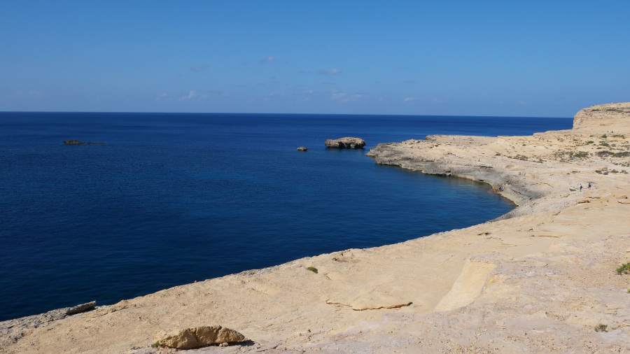 Okrog desete ure sva že bila na zahodni obali in se z ladjico popeljala po zalivu Dwejra. Bila sva še pred gnečami, tako da sva imela še na ladji popoln mir in tudi v zalivu. Kmalu zatem so prihajali turisti z avtobusi in je postalo res polno. Malo sva se še sprehodila po zalivu do razgledov z vrha, a je bilo že kar precej vroče na žgočem soncu.