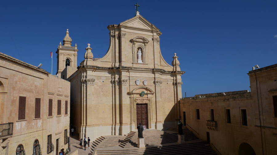 Znotraj obzidja je lepa baročna stolnica iz 17. stoletja, ki jo je zasnoval Lorenzo Gafà, malteški arhitekt, ki je zgradil tudi stolnico v Mdini. Rečeno je, da stoji tam, kjer je nekoč stal romanski tempelj, posvečen Junoni. Najbolj znana je po izjemnem iluzionističnem slikarstvu na stropu, ki prikazuje notranjost kupole, ki pa ni bila nikoli zgrajena.