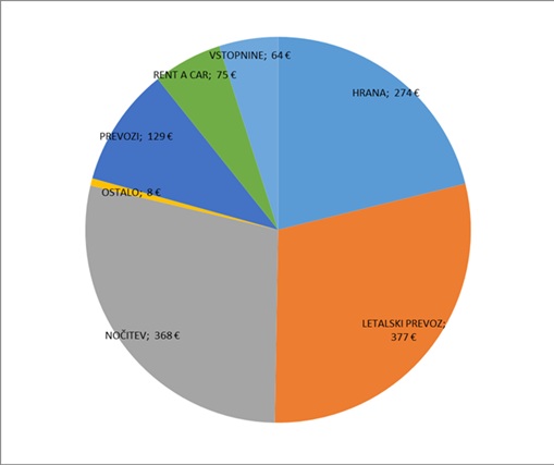 Celotni stroški potovanja za 2 osebi = 1.295 EUR