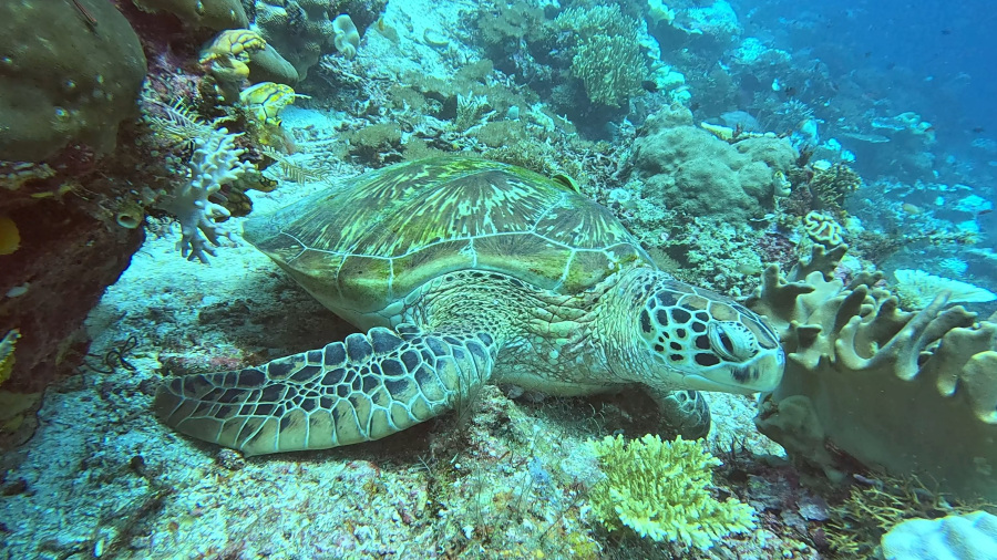 Vmes smo se vrnili v Tabari na odlično kosilo. Po kosilu pa sva se z Olenom še odpravila na severno stran našega otoka še na en potop in sicer na Merpati Adalah. Čudovite korale in polno življenja. Poponoma navdušena nad podvodnim svetom. Mogoče sem pričakovala vseeno več “velikih živali”, ampak koralni grebeni in življenje malih ribic je pa neverjetno bogato.
