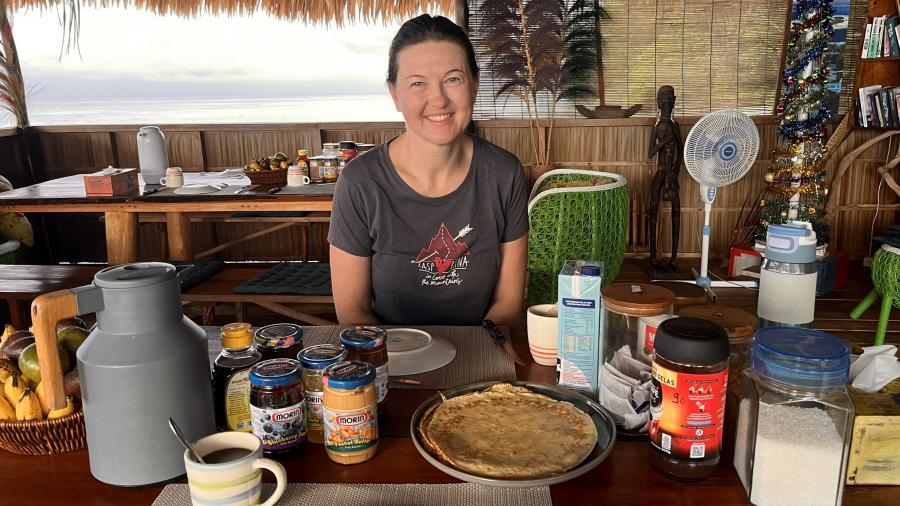 Napočil je dan, ki sva ga oba dolgo čakala in v resnici sva si tudi res želela videti slavno razgledno točko Piaynemo. Tabari Lodge vsakemu gostu omogoči izlet do Piaynema, je pa cena odvisna od števila gostov. Najprej sva se založila za zajtrk s palačinkami, nato pa smo se s čolnom odpeljali proti severu. Najprej smo naredili potop na najlepšem koralnem grebenu, ki so ga videle moje oči – Melissa’s Garden. Sledil je kratek odmor na čolnu in še drugi potop ob otoku Rufas, ki ima krasno laguno z lepim koralnim grebenom. V njej smo tudi končali naš potop. Ustavili smo se najprej na razgledni točki Star Lagoon, ki je zelo lepa. Končno smo se odpravili na razgledno točko Piaynemo, ki je res prelepa. Magičen pogled na posebno kraško pokrajino vzame dih, čeprav je bilo malce oblačno vreme. Do obeh razglednih točk je kar nekaj stopnic, zato smo si vsi vmes zaslužili obilno kosilo in okusno lubenico za posladek. Pozno popoldne smo se utrujeni vrnili nazaj v Tabari. Brigitte nam je za večerjo spekla izjemno okusno ribo, ki smo jo zmazali kot za šalo.