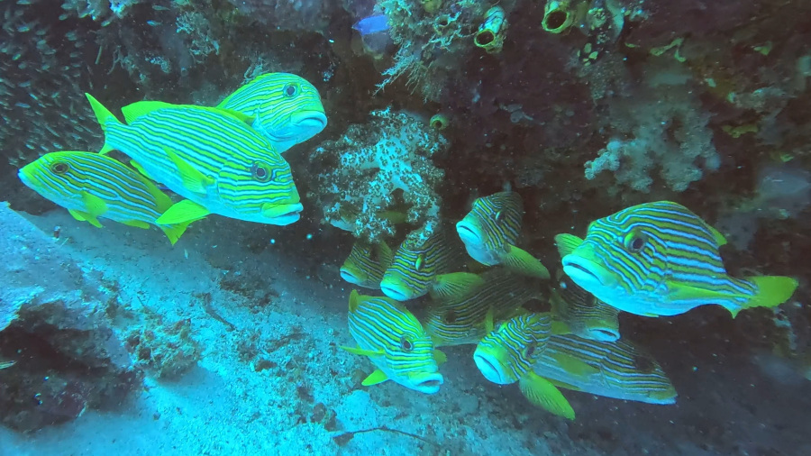 Prva postojanka Arborek Island. Nisem mogla verjeti očem, ko sem videla zaščitene zelo velike orjaške zeve. Gre za ogromne in največje školjke na svetu, ki zrastejo kar do 120 cm. Tukaj so bile vse točno tako velike in prečudovite. Njihova življenjska doba je več kot 100 let. Najdemo jih samo na nekaj mestih na svetu in redka mesta na Indoneziji jih tudi še imajo. Res so neverjetno lepe in tukaj jih je več kot 15 na enem mestu. Drugo potapljaško mesto pa je bil Manta Sandy. To potapljaško mesto je treba vnaprej rezervirati. To se mi je zgodilo prvič v življenju. In zelo je prav, da se omejuje število potapljačev naenkrat. Mante namreč prihajajo na tako imenovano čistilno postajo vsako dopoldne in mi jih ne smemo motiti pri njihovem procesu. Na peščenem dnu je tudi zarisana črta in nismo se smeli približati več kot dobrih 10 metrov stran od čistilne postaje. Na čistilni postaji so bile mante ves čas prisotne, ena, dve, tudi tri. Imeli pa smo srečo, da se nam je ena od njih celo popeljala direktno nad gravami in zaokrožila nad nami ter se vrnila nazaj na čistilno postajo. Prava poezija pod vodo. Hvaležna.