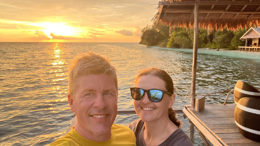 Z Olenom sva tako pred kosilom končala najino 6-dnevno raziskovanje Raje Ampat pod morsko gladino. Naredila sem vseh 14 načrtovanih potopov in tudi zdravje mi je super služilo. Videla sem vse in res je Raja Ampat nekaj najlepšega na svetu. Več sem si sicer obetala večjih živali (sicer sploh ne vem zakaj), ampak koralni grebeni in življenje ob njih pa je neverjetno bogato. Tam se veliko dogaja v kratkem času, a ko doma pogledaš posnetke, je vse skupaj res neverjetno lepo in bogato. Naj tako ostane še mnogo desetletij. Brigitte je ponovno pripravila izjemno okusno kosilo (tunin steak), za večerjo pa sva jo nahecala, da je še enkrat naredila tunin tatar z avokadom in mangom. Ooooo, uslišala naju je in dobila sva še repete. Imela sva tudi krasno umirjeno popoldne in prekrasen sončni zahod. Prečudovit zaključek.