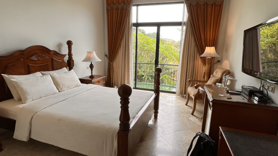 V Jakarti sva bila prvič in je res grozljivo velika. Nisva še bila domača, zdaj sva. Lokacijo za prvič sem izbrala na super mestu, ob glavni vpadnici v center mesta. Hotel je zelo praktično zasnovan, zaposleni so izredno prijazni. Sobe so malce štoraste, ker imajo umivalnik kot del sobe, potem pa posebej še tuš in posebej wc. Ampak soba je bila povsem v redu, čista in tudi lokacija zelo lepa in mirna. Imajo celo bankomat v predverju in tudi taksiji so ves čas pred vrati. Restavracija se nahaja na vrhu hotela, kjer strežejo tudi zelo okusen in zelo bogat zajtrk. Naju je hotel povsem zadovoljil v luči vrednost za denar.