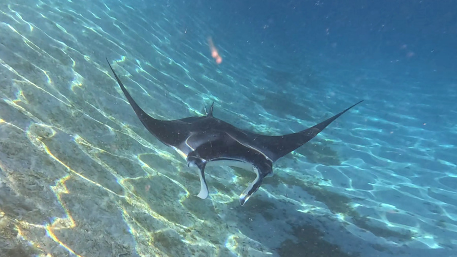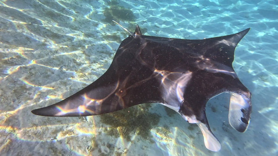 Odšli smo že pred sedmo zjutraj, kar je nama res ustrezalo. Že prejšnji dan sva si kupila sendviče za zajtrk, časovna razlika pa nama še vedno ni dopuščala jutranjega spanja. Zbujala sva se še vedno ob 4h, kar je bilo super. Zvečer pa sva seveda ob 20h že tudi spala kot top. Najprej smo se odpeljali do mant na snorklanje. Snorklanje z mantami je na drugem mestu kot potapljanje, saj je na manjši globini. Tukaj je prav tako čistilna postaja za mante, ampak na globini 5 metrov. Mante pridejo vsako jutro tudi sem na čiščenje. Spet nisem verjela, a takoj ko sem skočila v vodo, sem imela manto pred nosom. Zelo blizu mene je plavala, tako da sem morala kar pokrčiti noge, ko je šla mimo. Uf, še eno noro lepo doživetje.