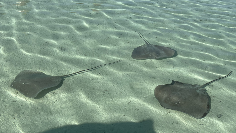 Nato smo se odpeljali do motuja, kjer je kar nekaj nastanitev. Motu so peščeni otoki, ki so še ostali na površju pri ugrezanju celotnega otoka. Motuji so res prekrasni. Večina ni poseljena, na nekaterih pa je letališče oziroma so tudi kakšne nastanitve. Sicer pa krasne palme in zelo lepe plaže. Tam smo lahko opazovali skate, ki ves čas plavajo tik ob obali in čolnih. Povsem neboječi so in priplavajo povsem blizu.