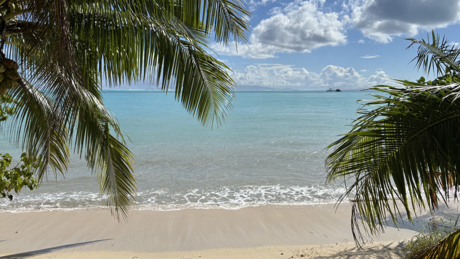 Malce daljši spanec nama je zelo prijal, nato pa zajtrk in na letališče. Imela sva namreč dopoldanski zelo kratek let (15 minut) na sosednji otok Huahine. Na otoku sva se nastanila v zasebnem apartmaju v glavnem mestu Fare, si najela skuter za celoten čas bivanja na otoku in si končno privoščila umirjeno ter zelo okusno morsko kosilo v eni izmed najboljših restavracij na otoku. Ni jih prav veliko. Popoldne sva naredila krog s skuterjem po južnem otoku in se naužila razgledov na bujno tropsko rastje in otoško laguno z lepe razgledne točke. Zaenkrat zelo navdušena nad doživetim.