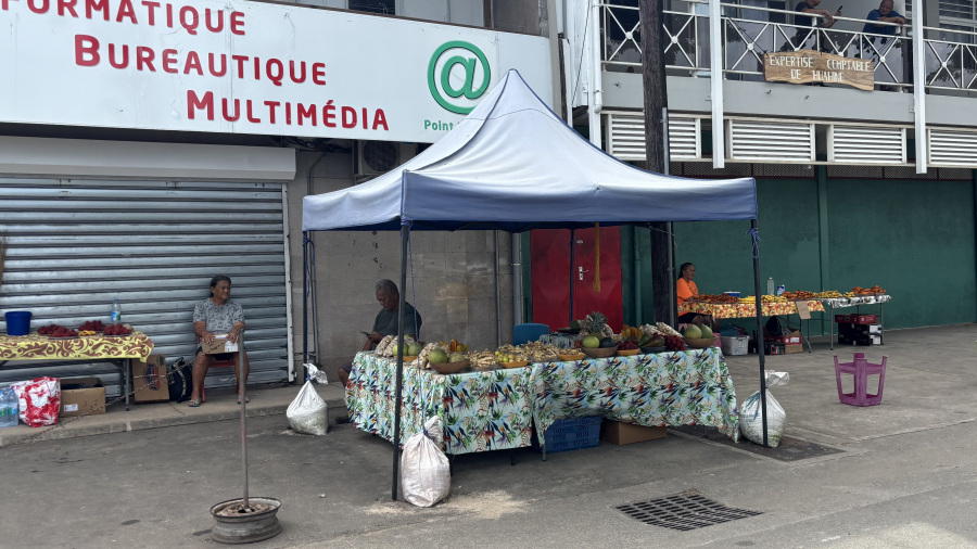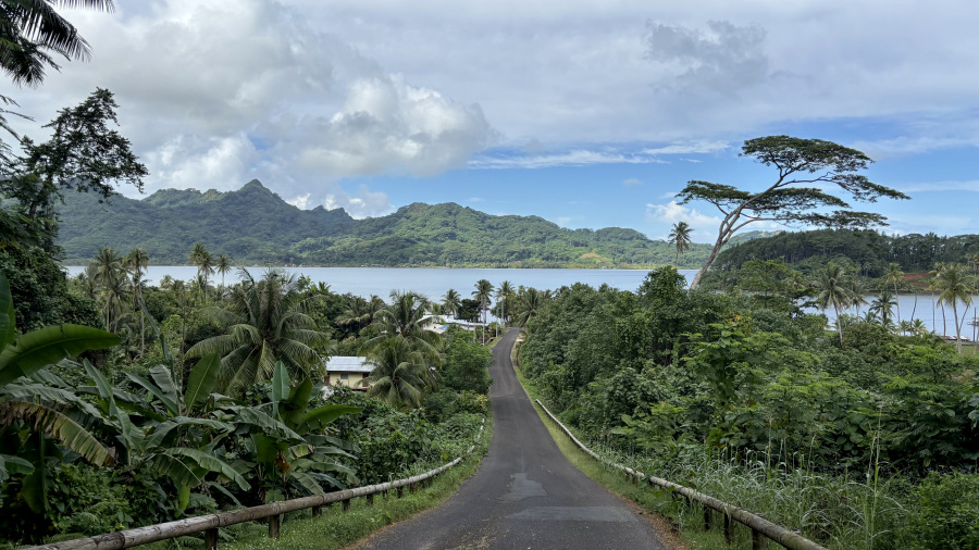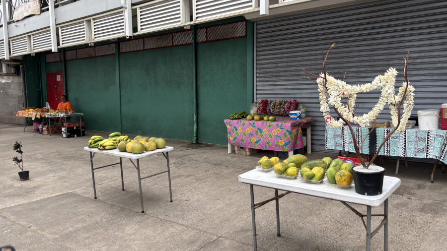 Želela sva nadaljevati vožnjo še po južnem otoku, a naju je lovila manjša nevihta in za kratek čas naju je tudi ujela. A sva se skrila pod krošnjo visokih dreves, tako da nisva bila preveč mokra. Sva se pa odločila, da se vseeno vrneva v glavno mesto in da obiščeva še manjšo tržnico, ki se odvija vsako jutro pred glavnim supermarketom. Domačini prinesejo malo sadja in zelenjave, ki ga pridelajo. Nič kaj bogatega. Čas je bil za kosilo. Tokrat sva se odločila seveda za ribo na žaru v Snack Tamma, ki je tudi v centru Fare ob morju. Odlična hrana tudi tokrat.