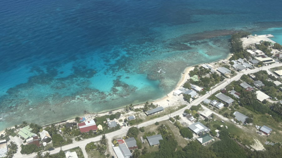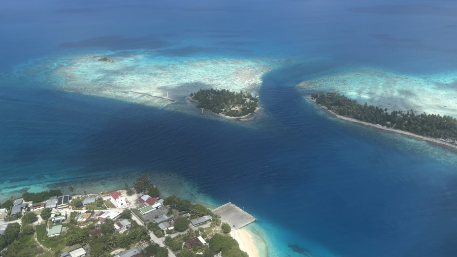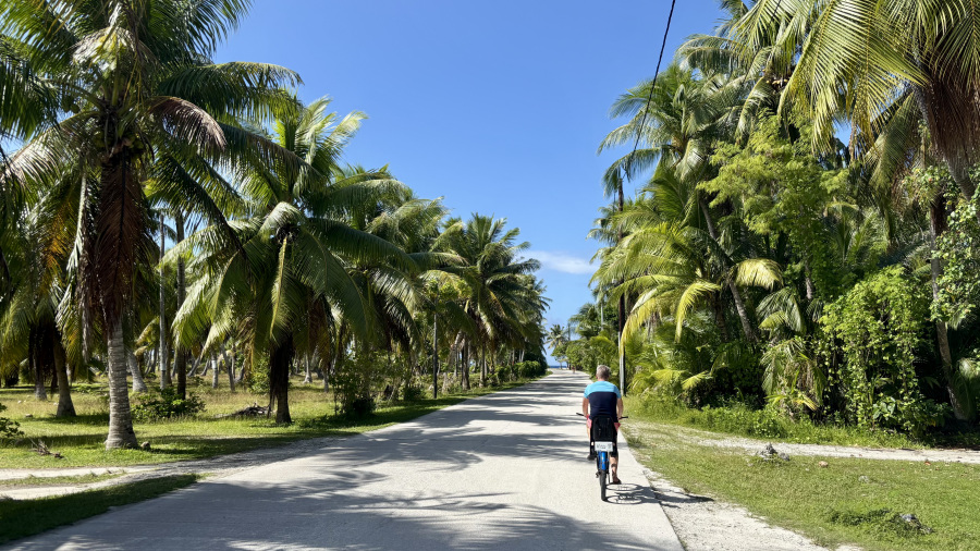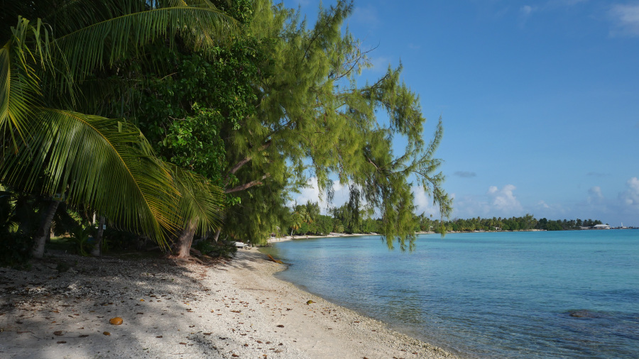 Iz zraka se je takoj videla drugačnost otoka in predvsem, da gre za zelo ozek pas kopnega. Tukaj ni vulkana, gore, špičke, ampak samo ogromen atol s palmami. Ravnina in palme, mivka in koralni greben. Nekaj minimalistični hiš, tu in tam kakšna trgovina. Res čisto drugače in zelo posebno.