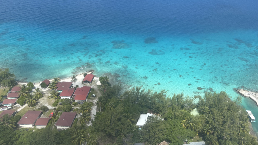 Ko smo se približevali Rangiroi, sem spet sedela na pravi strani in sem lahko iz letala gledala fotogenično modro laguno (Blue Lagoon), kamor sva se potem tudi podala na enodnevni izlet s hitrim čolnom. Iz zraka izgleda fantastično, s kopnega pa še bolje.
