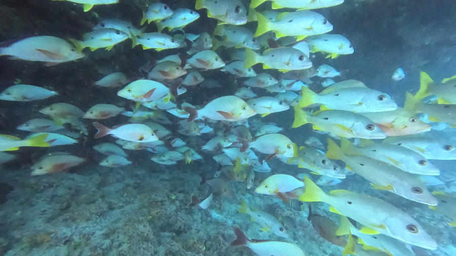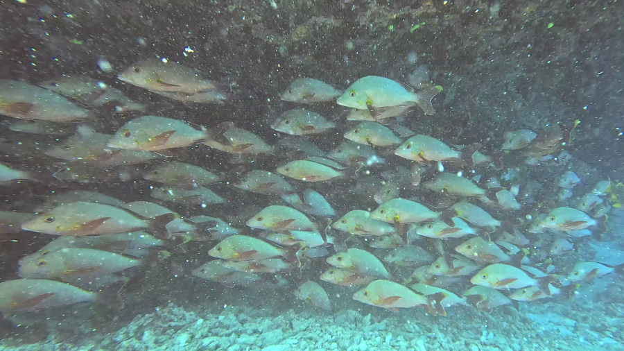 Potopi so bili kar zabavni vsaj do začetka, saj so bili trimetrski valovi v ožini, mi pa na gumenjaku. Zalivalo nas je že na čolnu in komaj smo se z vso opremo držali na čolnu. V morju je bilo na prvih dveh potopih dokaj mirno, a videli praktično nismo nič večjega. Razen manjših in večjih rib žal nič posebnega, zato bi potope lahko uvrstila res med slabše v mojem potapljaškem življenju. Menda nismo bili tukaj ob pravem času – polna luna, pa nepravilna plima in oseka…. v glavnem imela sem kar dolg nos, priznam.