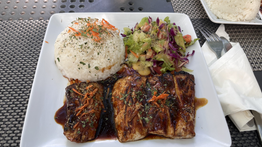 - kosilo mahi mahi na žaru z rižem in solato = 5.000 XPF (41,9 EUR)
