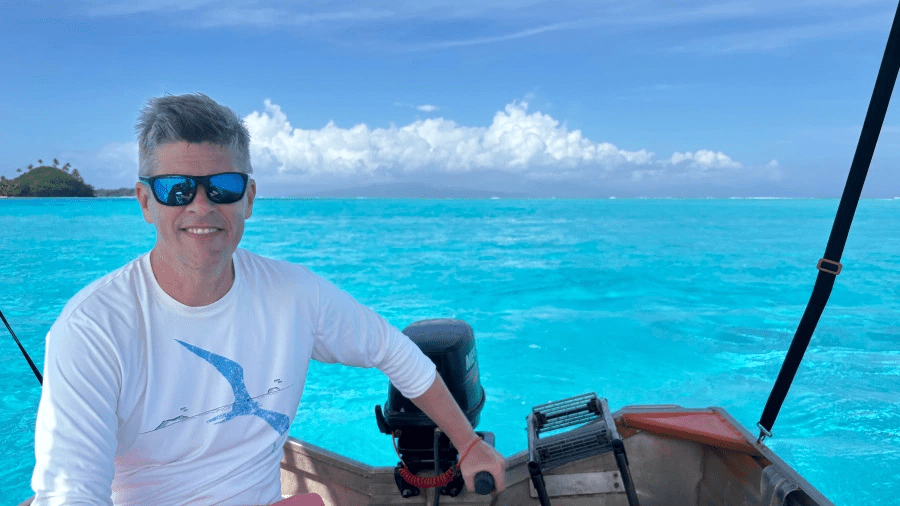 Pričakovala sva več turizma in turistov. A bilo nas je peščica na celem otoku. Zagotovo še ni bila polna sezona, a vseeno sva menila, da bo otok vseeno bolj poln. Na plaži Terei’a, ki je najlepša in tudi edina na otoku, se je čez dan nabralo mogoče 20 ljudi in nekaj domačinov. Presenetljivo malo. Vnaprej sva imela načrtovan izlet po laguni s čolnom, a ni bilo neke prave ponudbe. Nato sva si sama organizirala poldnevni izlet pri domačinki. Dogovorili smo se za odhod že ob 7. uri zjutraj. S čolnom naju je prijazna domačinka z malim simpatičnim kužkom peljala cel krog po laguni, vmes pa smo naredili različne postanke. Izlet je bil nepozaben in spet sem plavala z mantami. Popoldne sva spet kolesarila po otoku in uživala v sončnem zahodu.