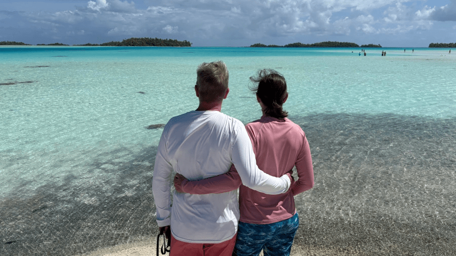 Slovo od Bora Bore je bilo precej lepše od prihoda na otok. Prišli smo v takšnem nalivu, da nisva videla tri metre pred nosom. Odšli pa v tako lepem vremenu, da ti solze tečejo po obrazu. Žal, tudi vsega lepega je enkrat konec. Hvaležna sva bila Bori Bori za nepozabne trenutke in zagotovo tudi za mnogo najlepših doživetij v najinem življenju. V bistvu je bila izkušnja precej lepša, kot sva si zamišljala. Let na Rangiroo je trajal eno uro in vmes smo celo iz zraka videli prekrasno Modro laguno. Na otoku sva se namestila v krasni hiški, nato pa s kolesom malo raziskala okolico.