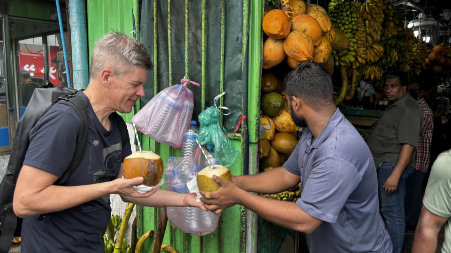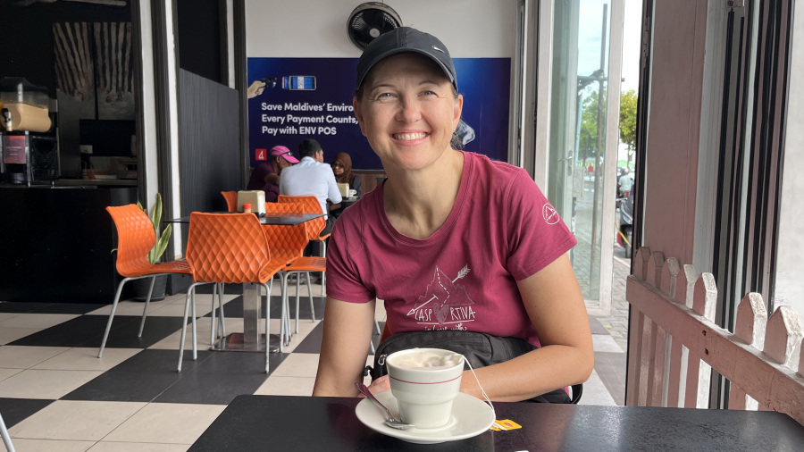 Letalo FlyDubai pristane na Maldivih ob 6:30 uri zjutraj po lokalnem času in zelo hitro sva bila skozi vstopno kontrolo. Pred odhodom si je nujno potrebno urediti QR kodo za vstop IMUGA na uradni spletni strani, saj vas sicer ne bodo prijavili niti na prvi let proti Maldivom. Na letališču v Male sva že kot doma, tako da sva se hitro preoblekla, saj je temperatura več kot 30 stopinj in visoka vlaga. Nato sva shranila najino prtljago na letališču in dvignila nekaj gotovine lokalne valute za manjše sprotne nakupe. Že sva bila pripravljena za odhod z lokalnim trajektom na glavni otok Male in si tam v kavarnici najprej privoščila kavico in čaj, nato pa sva se sprehodila še do ribje tržnice in do tržnice s sadjem. Matjaž še nikoli ni bil, jaz pa že poznam vse prodajalce in gospode, ki čistijo ribe. Meni je ta tržnica res nekaj posebnega, vedno sem rada tam in klepetam z domačini ter seveda se ne moreva upreti sveži kokosovi vodi. Rajsko.
