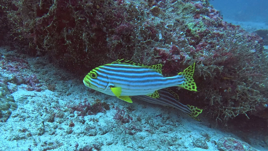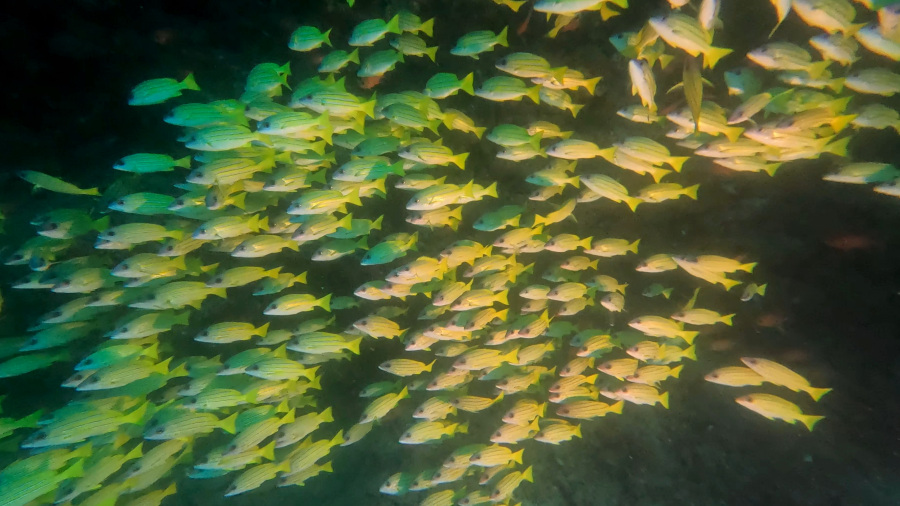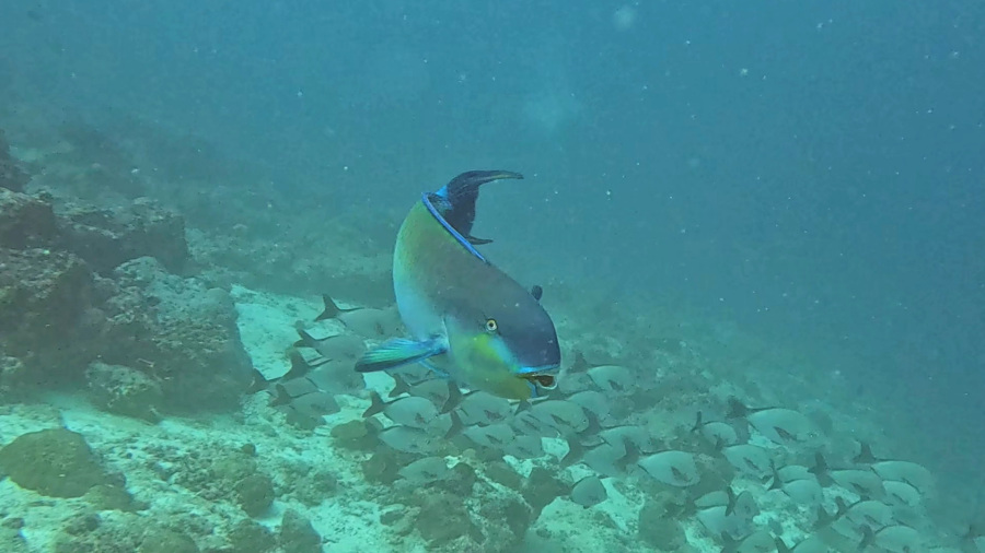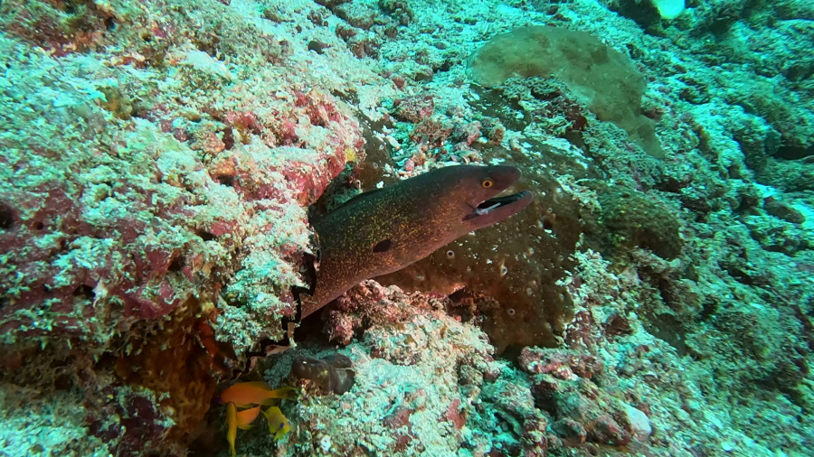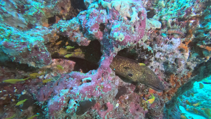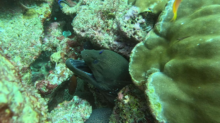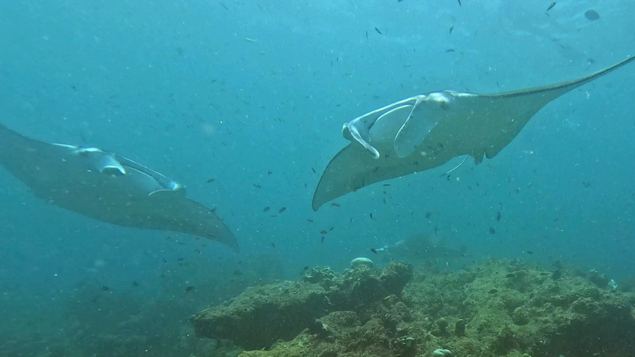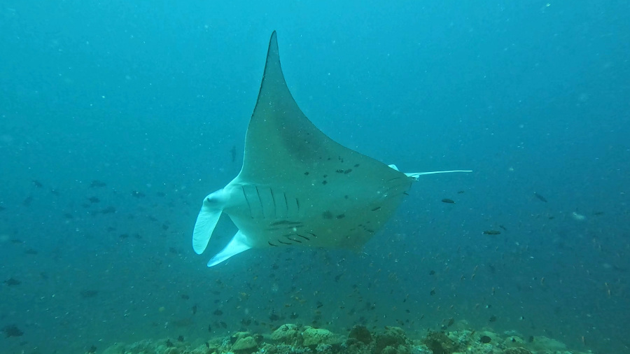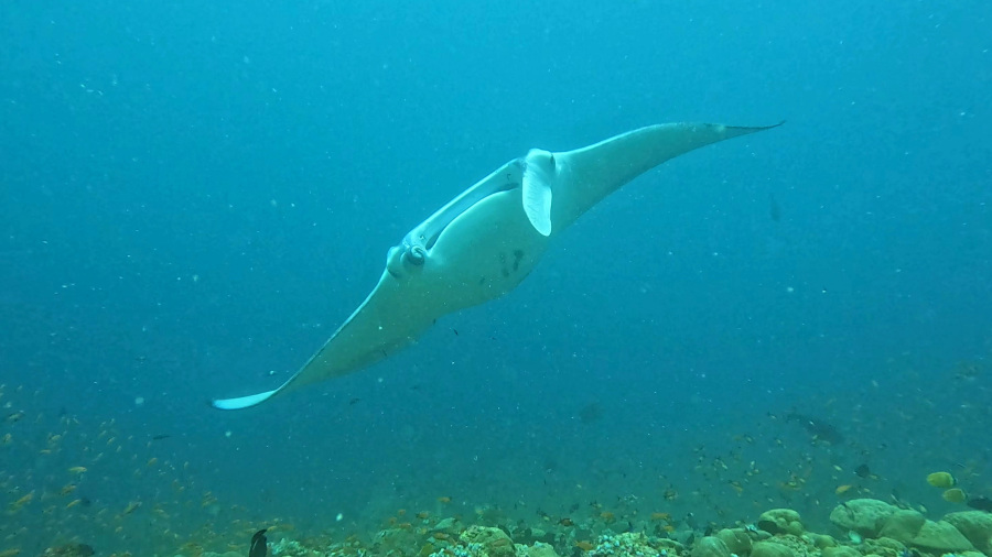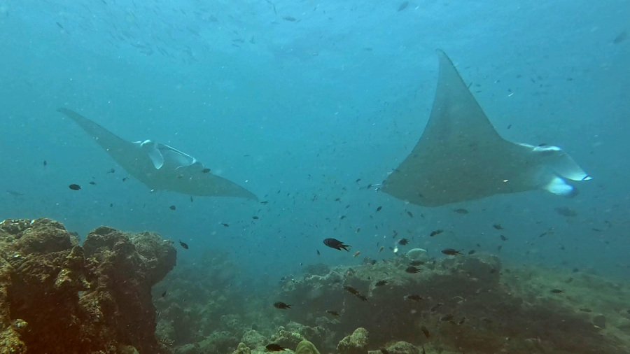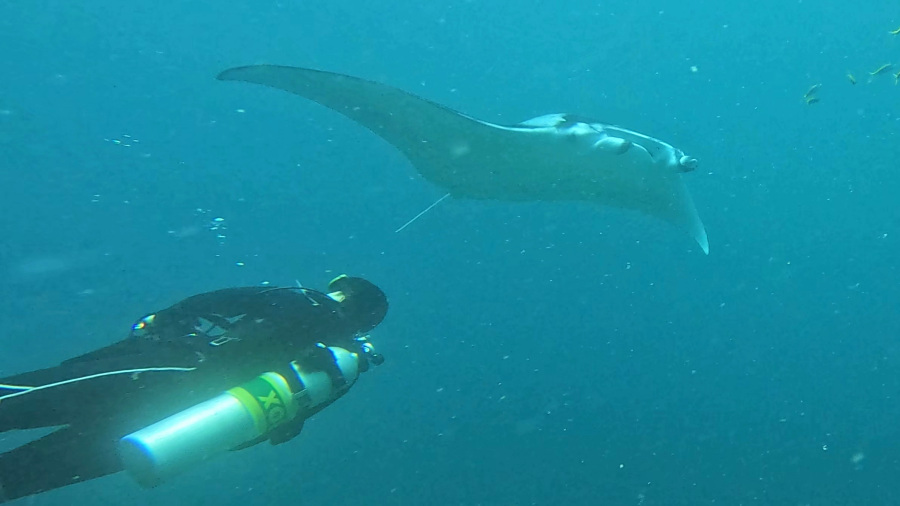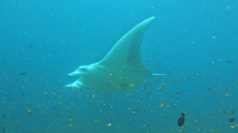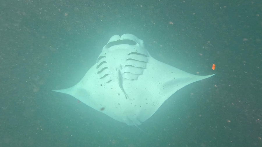 Že prvi potop je bil magičen. Sicer spet na včerajšnjem mestu, a tudi četudi se potapljaško mesto ponovi, je vedno drugačno življenje pod vodo. Jate rumenih rib, plamenka, morena, na čistilni postaji pa sicer samo ena manta, a ta je bila filmska. Uživala je v svojem spaju z mnogimi ribicami in okrog nje je plavalo na tisoče rib. Na postaji smo bili sami, zato smo lahko še toliko bolj uživali. Res prelepo.