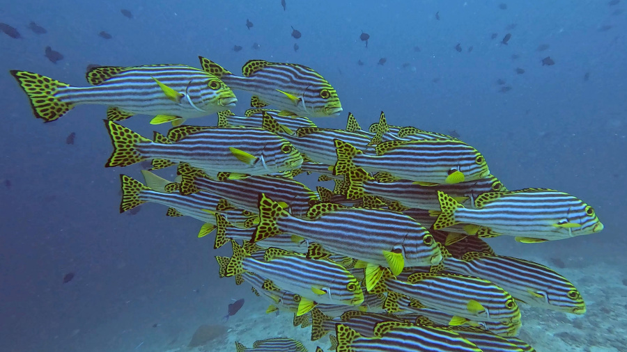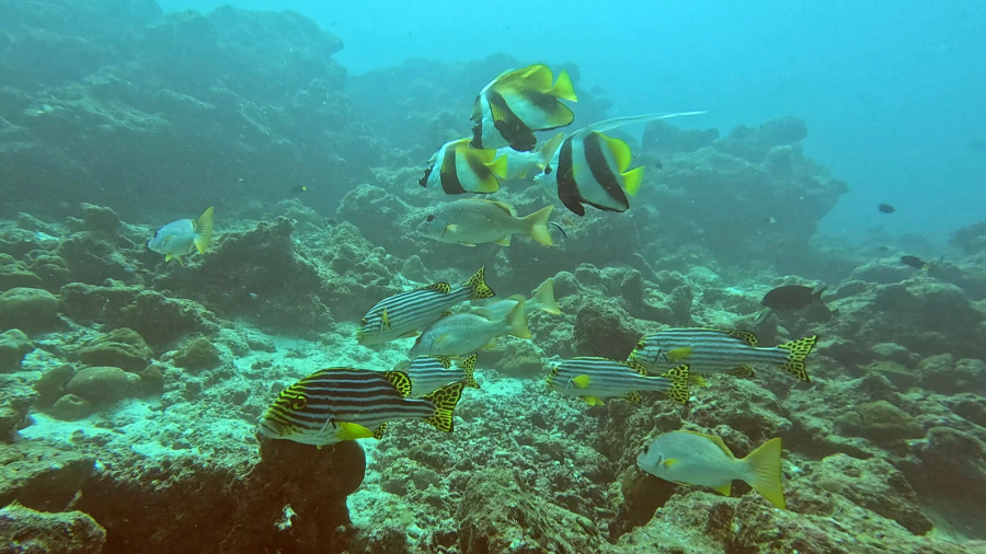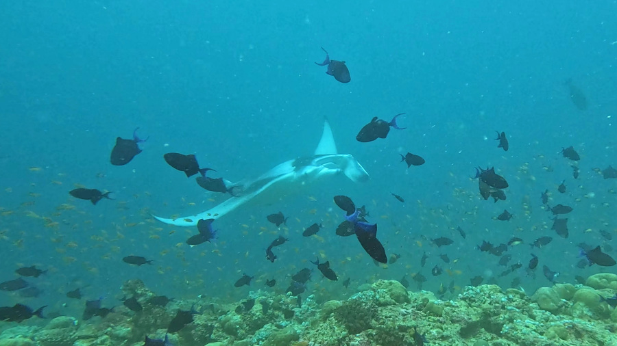 Najini dnevi na otoku Dharavandhoo so si bili v nadaljevanju zelo podobni. Vstajanje ob 6. uri, zgodnji zelo bogat zajtrk, ob 8. uri pa že na potapljanje. Tokrat smo naredili spet na istih potapljaških mestih dva izjemno lepa potopa. Seveda so bile mante glavne igralke, a tudi drugih podmorskih živali in rastlin ni manjkalo. Matjaž je medtem užival na popolnoma prazni hotelski plaži ob dobri knjigi. Med kosilom pa sem morala odhiteti nazaj v vodo – v zalivu Hanifaru se je namreč zbralo kar 100 mant med hranjenjem s planktonom in tega neprecenljivega pojava nikakor nisem smela zamuditi. Snorklanje s toliko kraljevskimi mantami je nekaj najlepšega, kar sem doživela v življenju. Neprecenljivo. Res hvaležna, da se mi je vse poklopilo in sem lahko to doživela v živo.