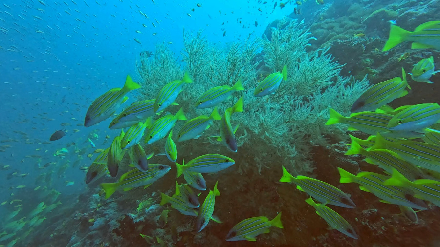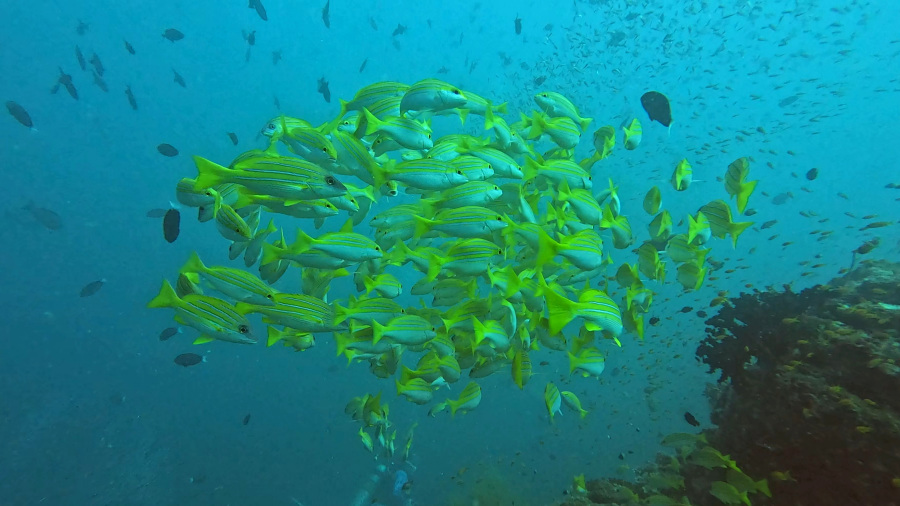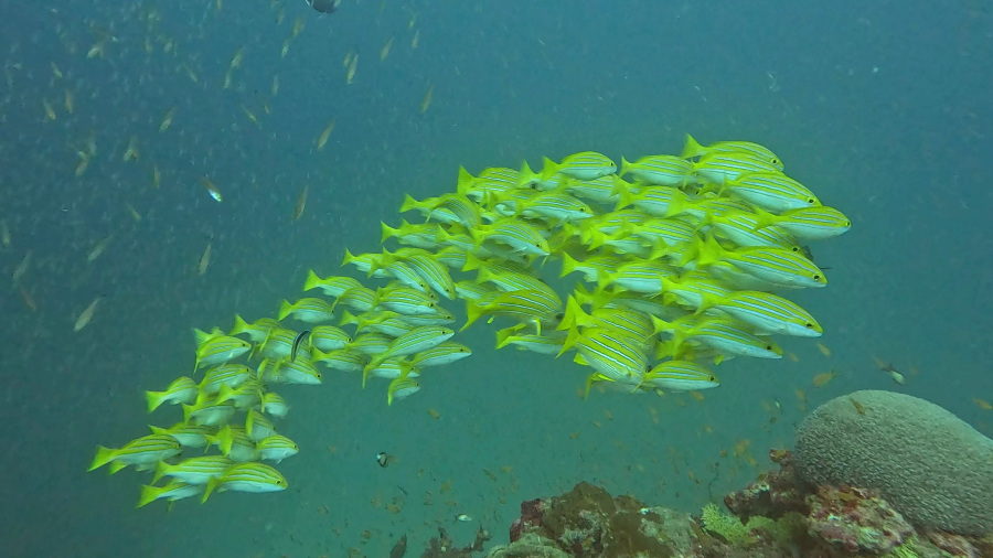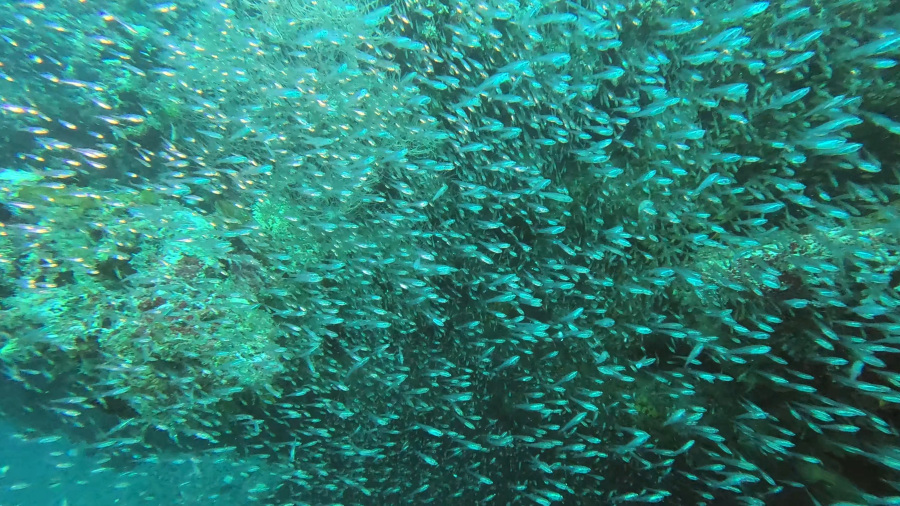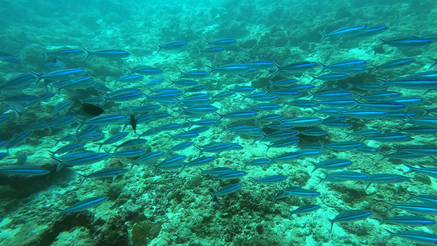 Kot običajno smo naredili dva lepa dopoldanska potopa z začetkom ob 8. uri. Vreme je bilo še vedno krasno in nehalo je pihati, tako da je bilo morje tudi precej manj valovito. A veter na površju nima nobene veze s tokovi, ki so v morju med potapljanjem. Le-ti se obračajo, lahko sta celo dva toka, zgornji in spodnji. Tukaj je bilo potapljanje res prijetno, saj nikoli ni bilo premočnega toka.